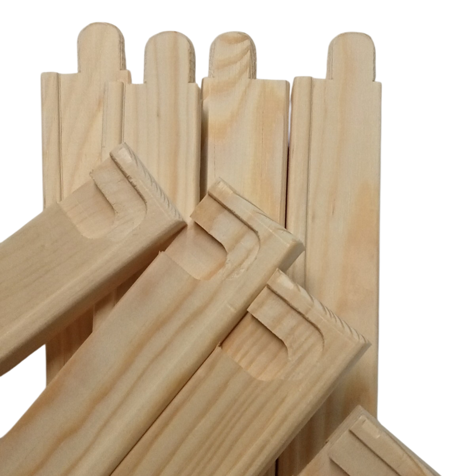 Listones y travesaños fabricados con madera de pino natural de primera calidad, ofreciendo una excelente combinación de estabilidad y resistencia para la creación de bastidores de lienzo profesionales.